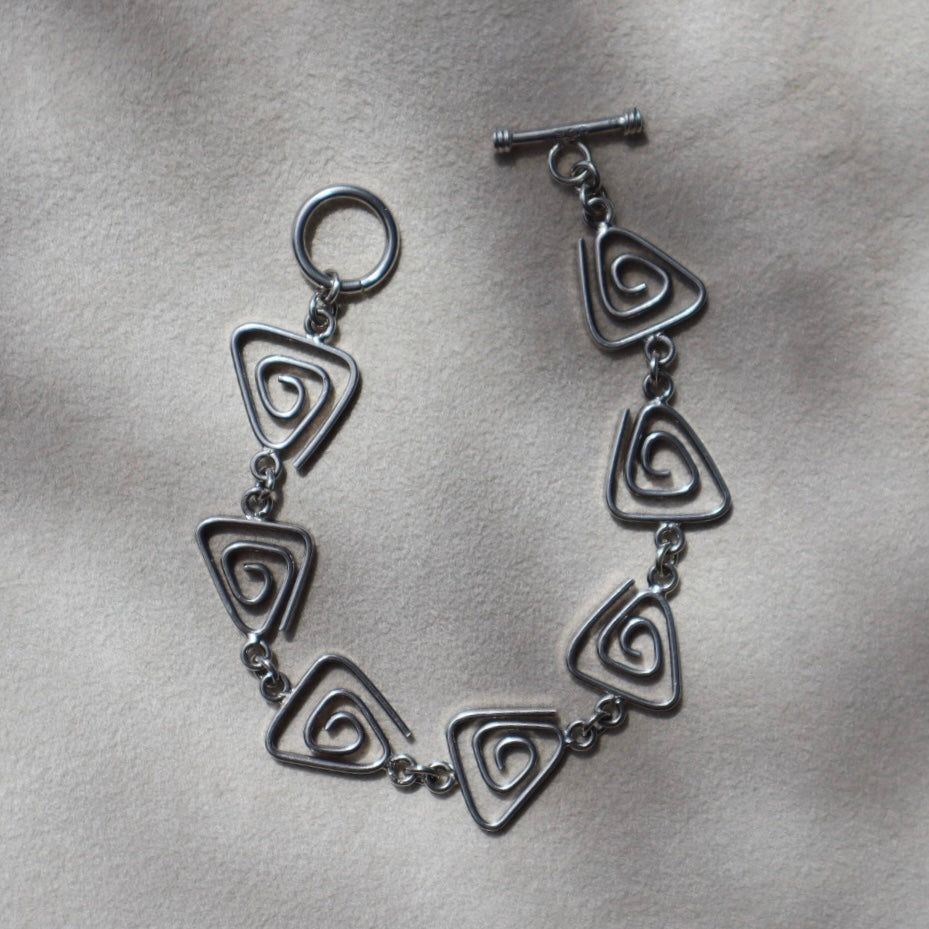 Sterling silver modernist toggle bracelet. Handcrafted triangular spiral links, perfectly chunky and satisfyingly weighty.